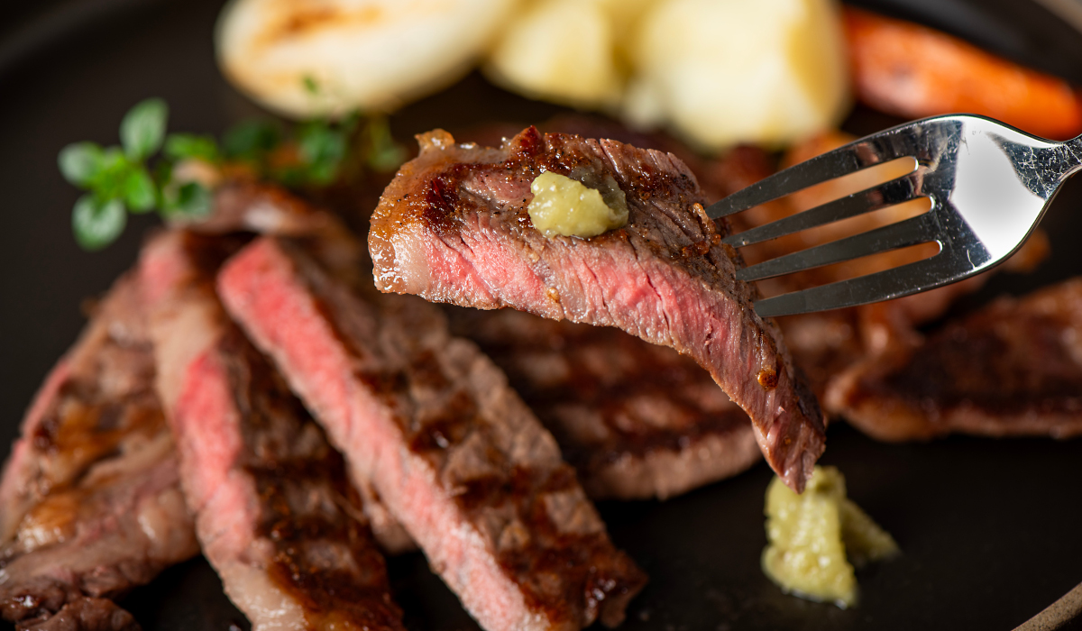 【十勝ハーブ牛 サーロインステーキ 400g】十勝ハーブ牛は、黒毛和牛とホルスタインを掛け合わせた交雑種。赤身とサシのバランスが絶妙で、濃厚な旨味と後味の軽やかさが特徴です。